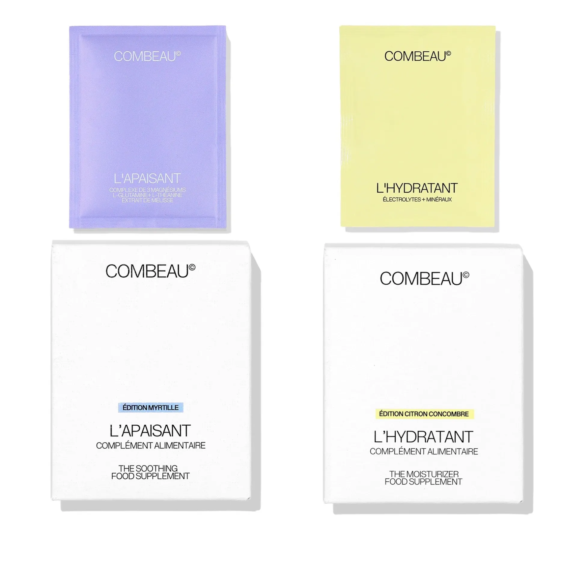 Un duo de compléments alimentaires en poudre pour faire le plein d’énergie : L’Hydratant à base d’électrolytes, vitamine C et acide hyaluronique pour une hydratation intense et un regain d’énergie ; et l’Apaisant enrichi en trois formes de magnésium biodisponibles, L-Théanine, L-Glutamine et extrait de Mélisse biologique, véritable « régénérateur rééquilibrant » pour réduire le stress, soutenir l’équilibre cellulaire et favoriser un sommeil réparateur.