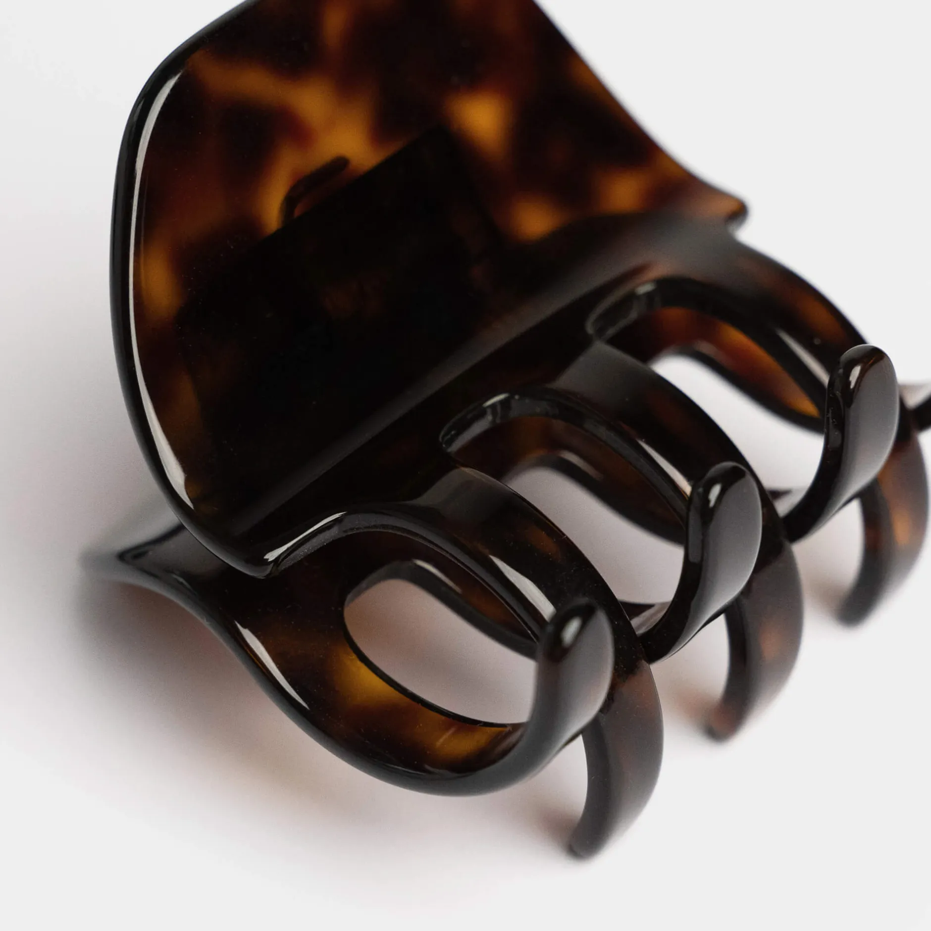 Une pince à cheveux en acétate de cellulose, un matériau alternatif au plastique et made in France, pour coiffer aussi bien les cheveux mi-longs à longs, même fins.