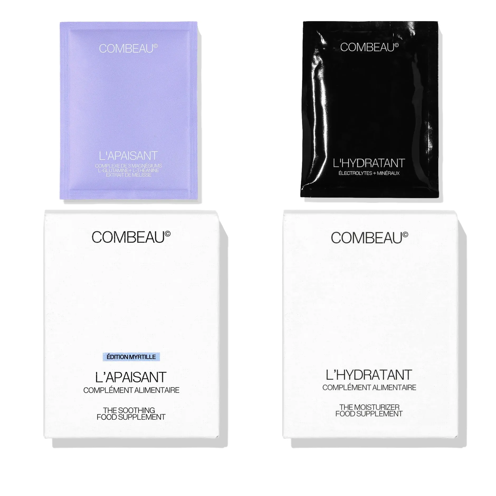 Un duo de compléments alimentaires en poudre pour faire le plein d’énergie : L’Hydratant à base d’électrolytes, vitamine C et acide hyaluronique pour une hydratation intense et un regain d’énergie ; et l’Apaisant enrichi en trois formes de magnésium biodisponibles, L-Théanine, L-Glutamine et extrait de Mélisse biologique, véritable « régénérateur & rééquilibrant » pour réduire le stress, soutenir l’équilibre cellulaire et favoriser un sommeil réparateur.